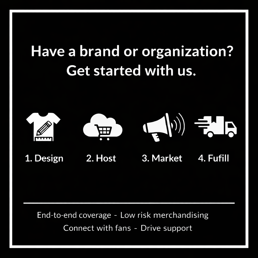 Design, sell, and fulfill premium merchandise without upfront inventory or operational headaches. We provide end-to-end coverage so your brand can connect with fans, drive support, and unlock new revenue streams — fast.